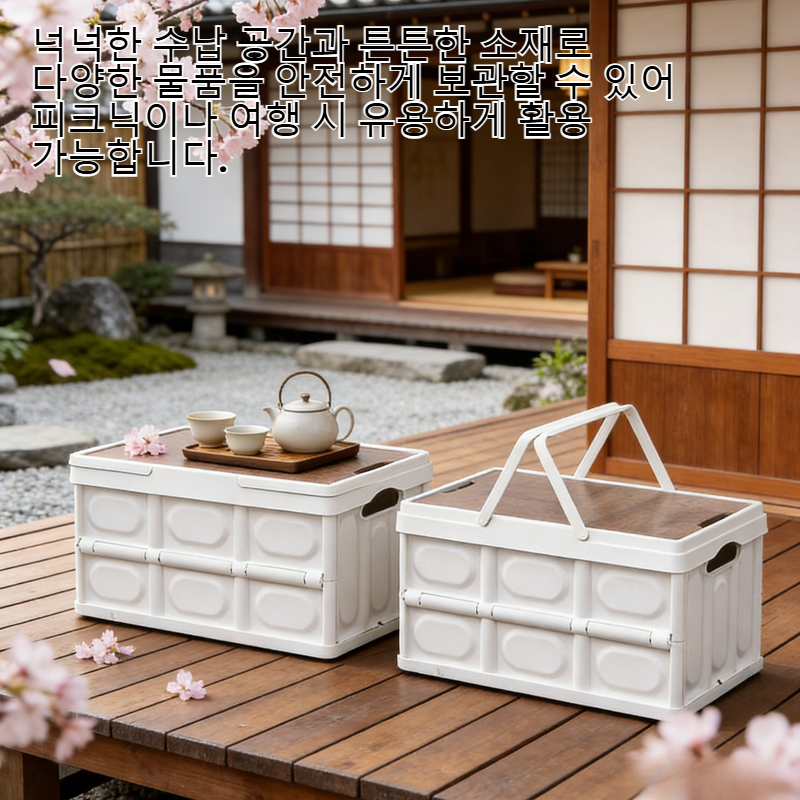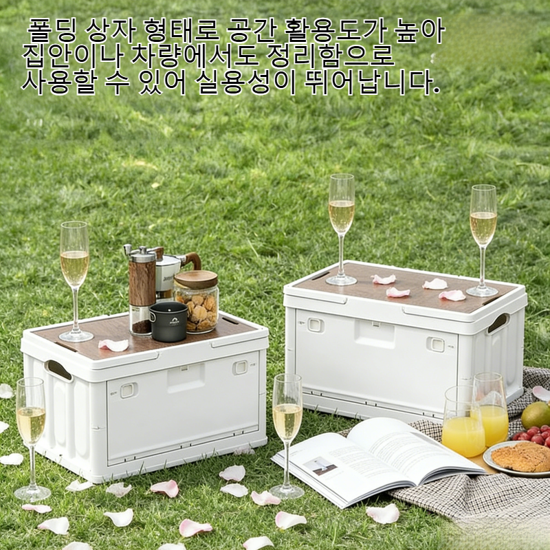● 캠핑이나 야외 피크닉에 최적화된 접이식 디자인으로 휴대가 간편하며, 사용 후에는 손쉽게 접어 보관할 수 있습니다. ● 넉넉한 수납 공간과 튼튼한 소재로 다양한 물품을 안전하게 보관할 수 있어 피크닉이나 여행 시 유용하게 활용 가능합니다. ● 폴딩 상자 형태로 공간 활용도가 높아 집안이나 차량에서도 정리함으로 사용할 수 있어 실용성이 뛰어납니다. ● 방수 및 내구성이 우수하여 야외 환경에서도 걱정 없이 사용할 수 있으며, 청소도 간편하게 할 수 있습니다. ● 심플하고 세련된 디자인으로 캠핑, 피크닉뿐 아니라 일상에서도 인테리어 소품으로 활용할 수 있습니다.